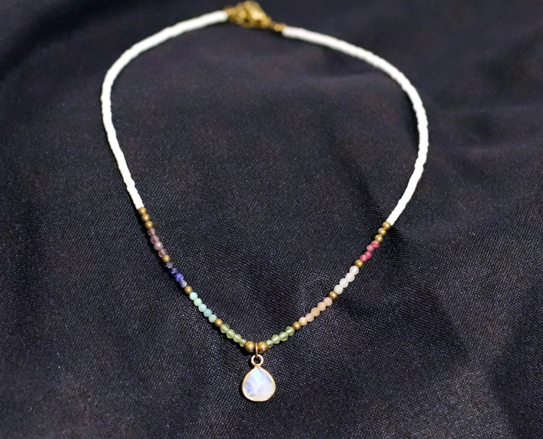 Egyedi fűzés, vegyes gyöngyök, szép csiszolt is, 43 cm.