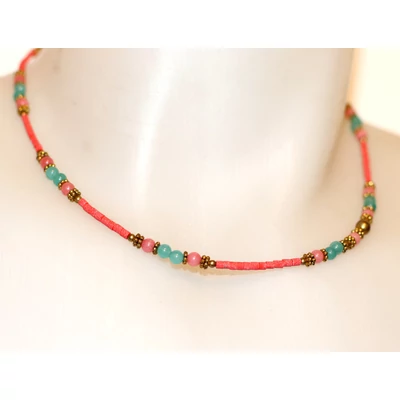 Korall- és kék színben nyaklánc