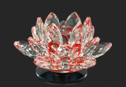 Kristályüveg lótusz dísz, fény és lótusz tiszta energia, 8 cm. Minden lakás szép éke!