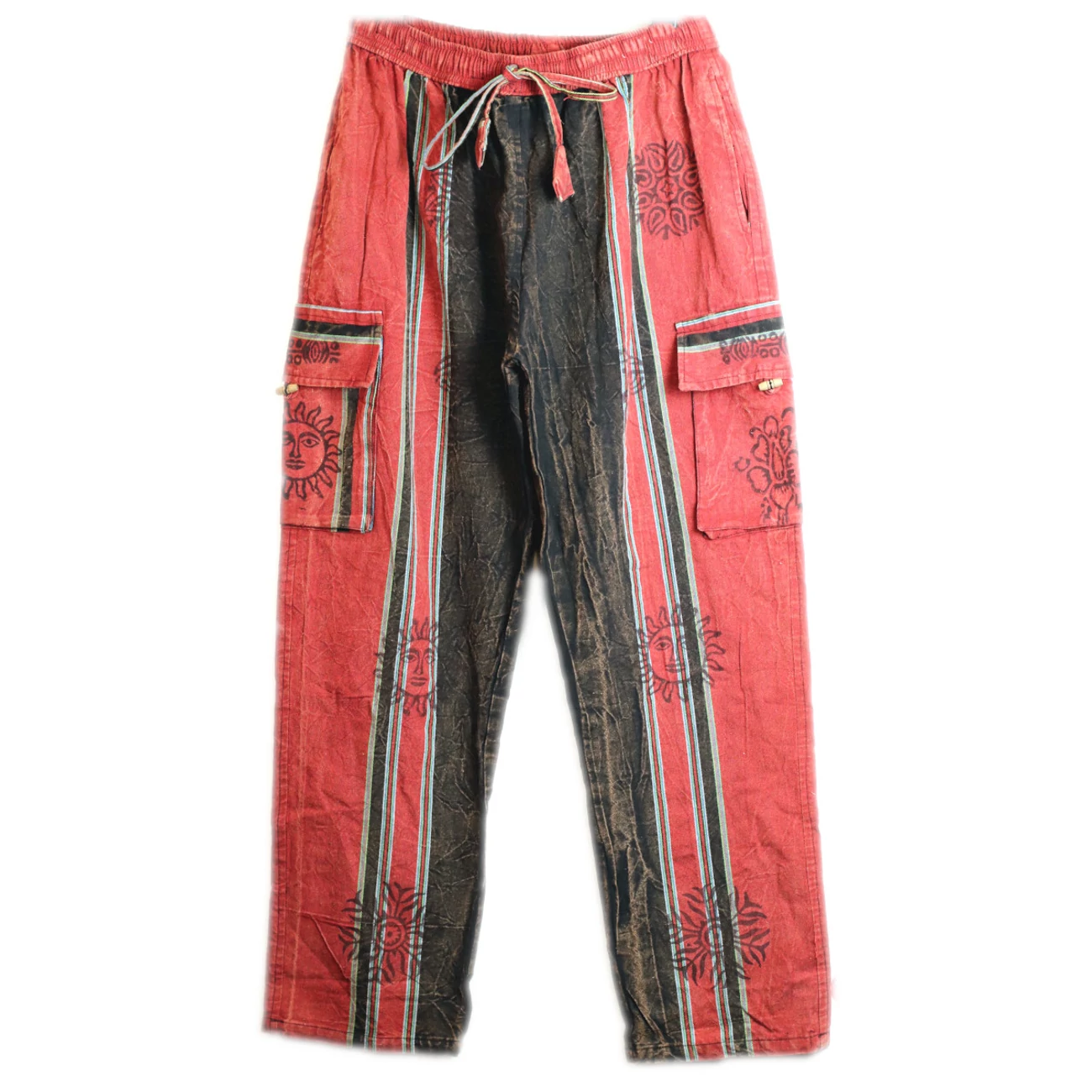 Nepáli mintás bordó - fekete koptatott L