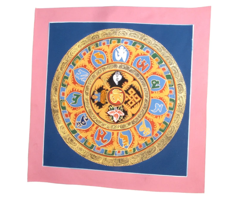 Kézzel készült nepáli thanka festő műhelyekben. Minőségi, aprólékosan kidolgozott, mindegyik más, egyedi. 25*25 cm. Ezek a tibeti mandalák jó energiát hoznak a környezetedbe, segítik a meditációt, a buddhista gyakorlatokat. Ízlés szerint keretezhető.