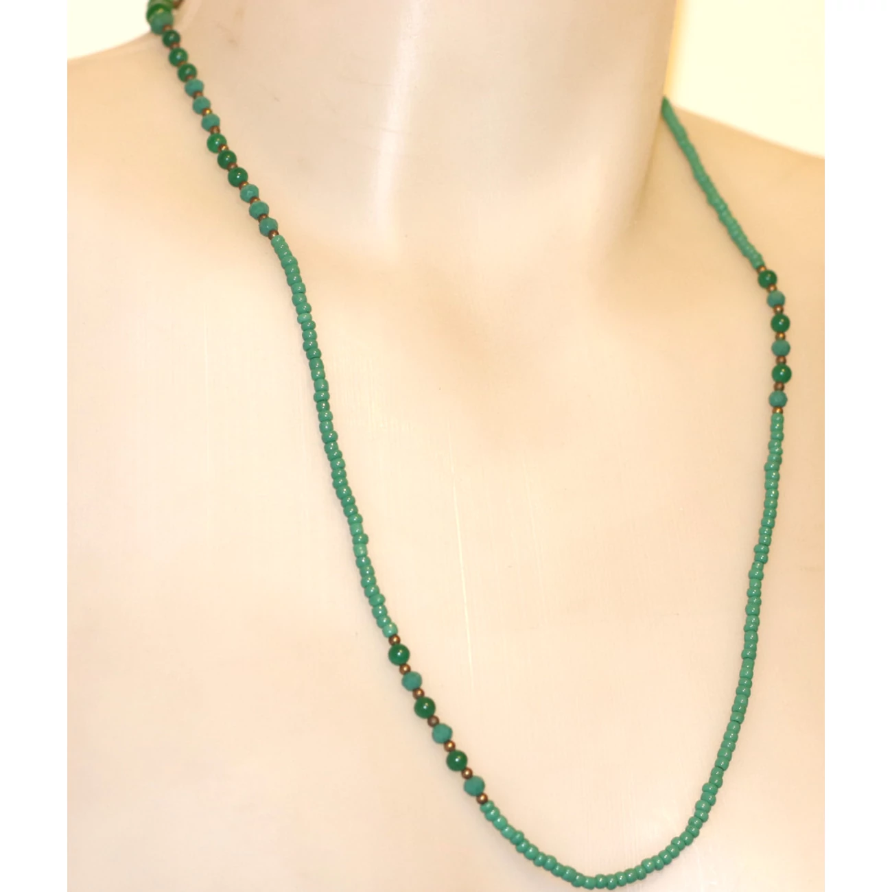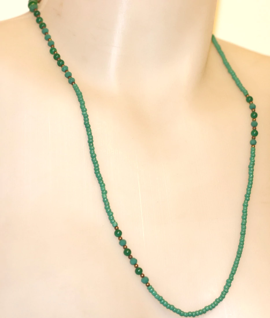 Egyedi fűzés, vegyes gyöngyök, szép csiszolt is, 60 cm.